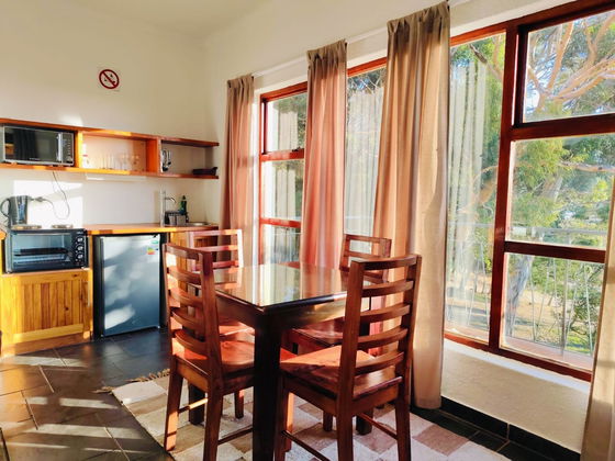 This apartment has a queen bed, 2 sleeper couches and an en-suite with a bath and shower. It includes a kitchenette with a microwave and a mini oven, a smart TV and Wi-Fi. The balcony offers lovely pool, garden, sea and mountain views.